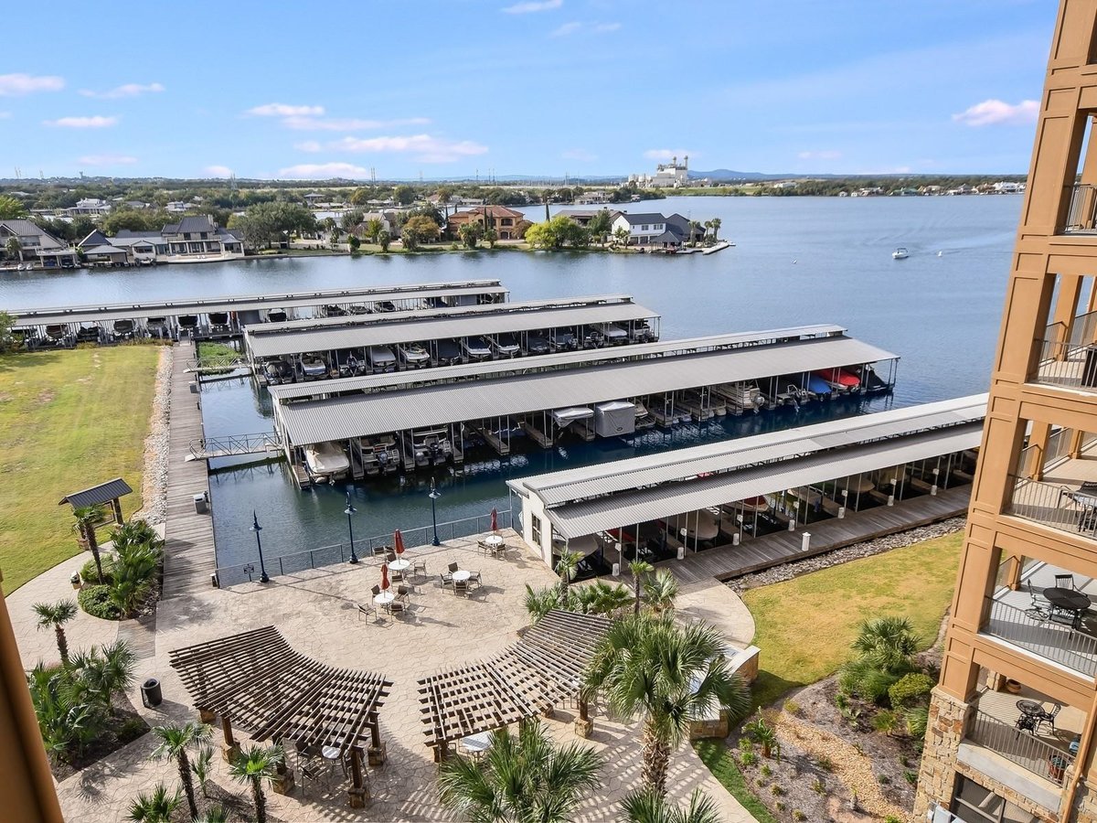 Experience the ultimate Hill Country lifestyle with the luxury of resort-style living at The Waters in Horseshoe Bay Resort! This beautifully furnished Lake LBJ waterfront condo is perfectly positioned in the heart of Horseshoe Bay, just steps from the Yacht Club, sparkling resort pool, marina, and the scenic 18-hole putting course. The 2-bedroom, 2-bath floor plan features an open living area that flows seamlessly onto a spacious private patio, accessible from both the living room and the primary suite, ideal for entertaining or simply savoring the lake views. Hardwood floors enhance the main living areas with warmth and character, while plush carpet in the bedrooms adds comfort. The primary suite is filled with natural light and includes an en-suite bath with a dual vanity and a large walk-in shower. Residents of The Waters enjoy exclusive amenities including a private lagoon-style pool, outdoor grilling stations, lounge areas, and fishing docks. Each unit also comes with a covered parking space and storage unit in the building's secure garage. Offered fully furnished with brand-new décor, this move-in-ready retreat is equally suited as a weekend getaway or as an income-generating investment by enrolling in the resort rental pool. A true lock-and-leave property in one of the Hill Country's most desirable destinations. Schedule your private showing today!