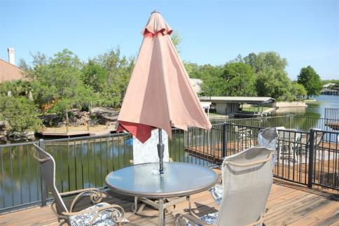 Highly desired end unit in the Crossings complex in prestigious Horseshoe Bay. This stunning two bedroom, three bathroom townhome with over 1,400 square feet is on the constant level Lake LBJ. The Crossing is a small, exclusive complex with only a few units. This home has been updated, including granite counters in the kitchen, tile floors, white washed cabinets, updated appliances and more. The kitchen has a picture window framing the beautiful private patio. The kitchen is open to the living room and dining room, with a view from the wall of windows -floor to ceiling - of the raidant outdoors. The upstairs master bedroom is spacious with windows allowing natural light and showcasing a fantastic view of the lake. Also in the master you'll find a sitting area and a prive entrance to the upper deck. The upper deck off the master bedroom has a jow dropping view of the lake. The en suite master bathroom has been remodled with granite counters, updated fixtures and a tiled shower surround. The huge closet has plenty of storage space. An end unit means no neighbors on one side. The lower deck is expansive featuring architectural columns and a spiral staircase. Pull your boat right up to your deck and dock your personal watercraft in minutes on the ramp. The front yard is lovely with mature plants and a grass area. The bonus with and end unit is the side yard that also provides extra outdoor space. With two bedrooms and three baths, there's plenty of space for your family and friends.