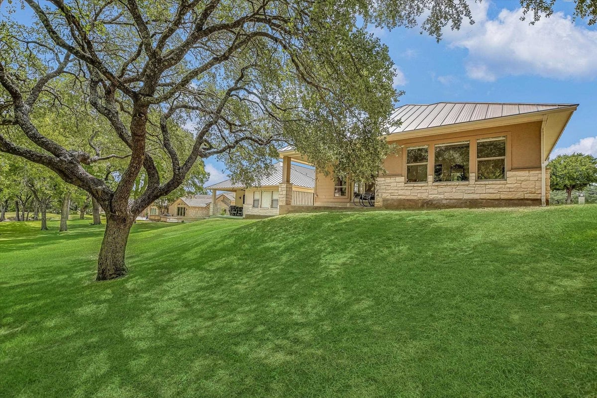 Welcome to 232 Fault Line Drive, a beautifully maintained 3-bedroom, 2-bath golf course home in Horseshoe Bay West. Offering 2,046 square feet of thoughtfully designed living space, this single-level retreat overlooks the pond on Hole #2 of the Ram Rock Golf Course, a dream location for golf enthusiasts and nature lovers alike. Step inside to discover a light-filled interior featuring an open-concept layout with a cozy stone fireplace, built-in cabinetry, and large windows that frame stunning outdoor views. The dining area flows seamlessly into the functional island kitchen, creating a welcoming space for entertaining or relaxed everyday living. Tray ceilings, crown molding, and a neutral color palette offer a timeless elegance throughout. The private primary suite offers peaceful pond views, a walk-in closet, and an en-suite bath. Two additional bedrooms provide flexibility for guests, hobbies, or a home office while the utility room provides plentiful storage, and the oversized two-car garage offers enough room for a golf cart if desired. Outdoors, enjoy the views from the covered patio while sipping your morning coffee or unwinding at sunset. The low-maintenance landscaping adds to the home's appeal, making it an excellent choice for a lock & leave getaway. Whether you're looking for peaceful weekends or a full-time Hill Country lifestyle, this home combines charm and unbeatable views that you can't deny. Don't miss the opportunity to make 232 Fault Line Drive your new address in the Hill Country.