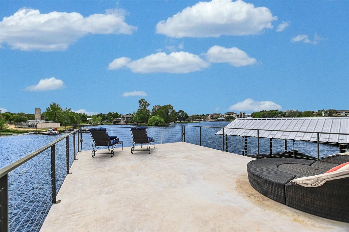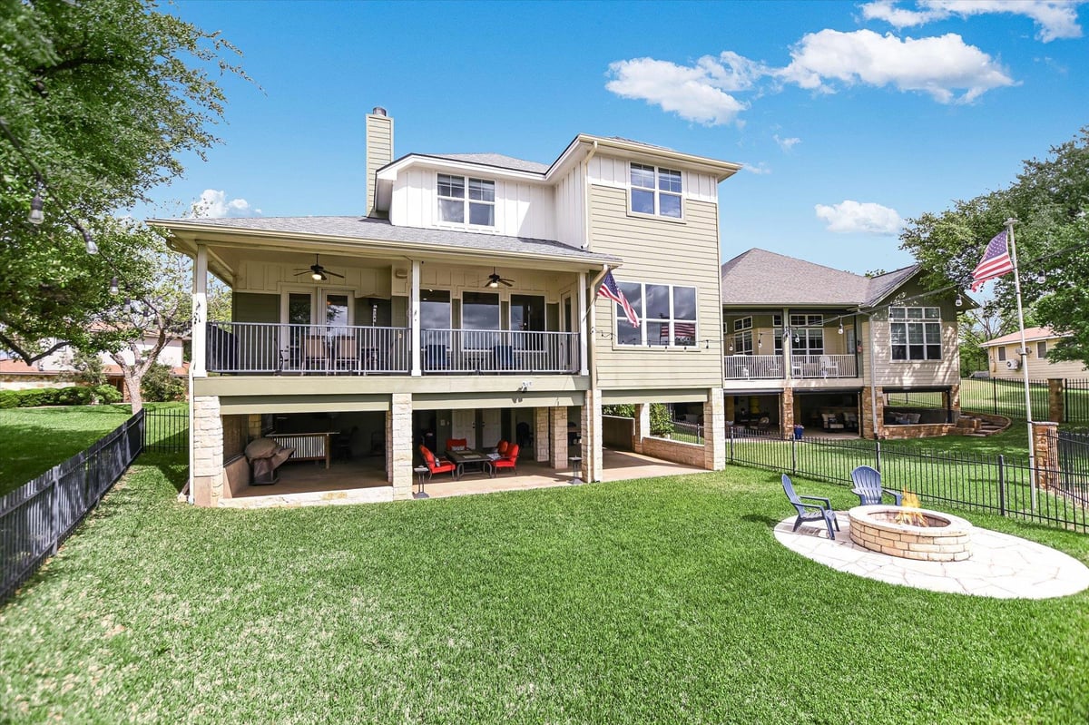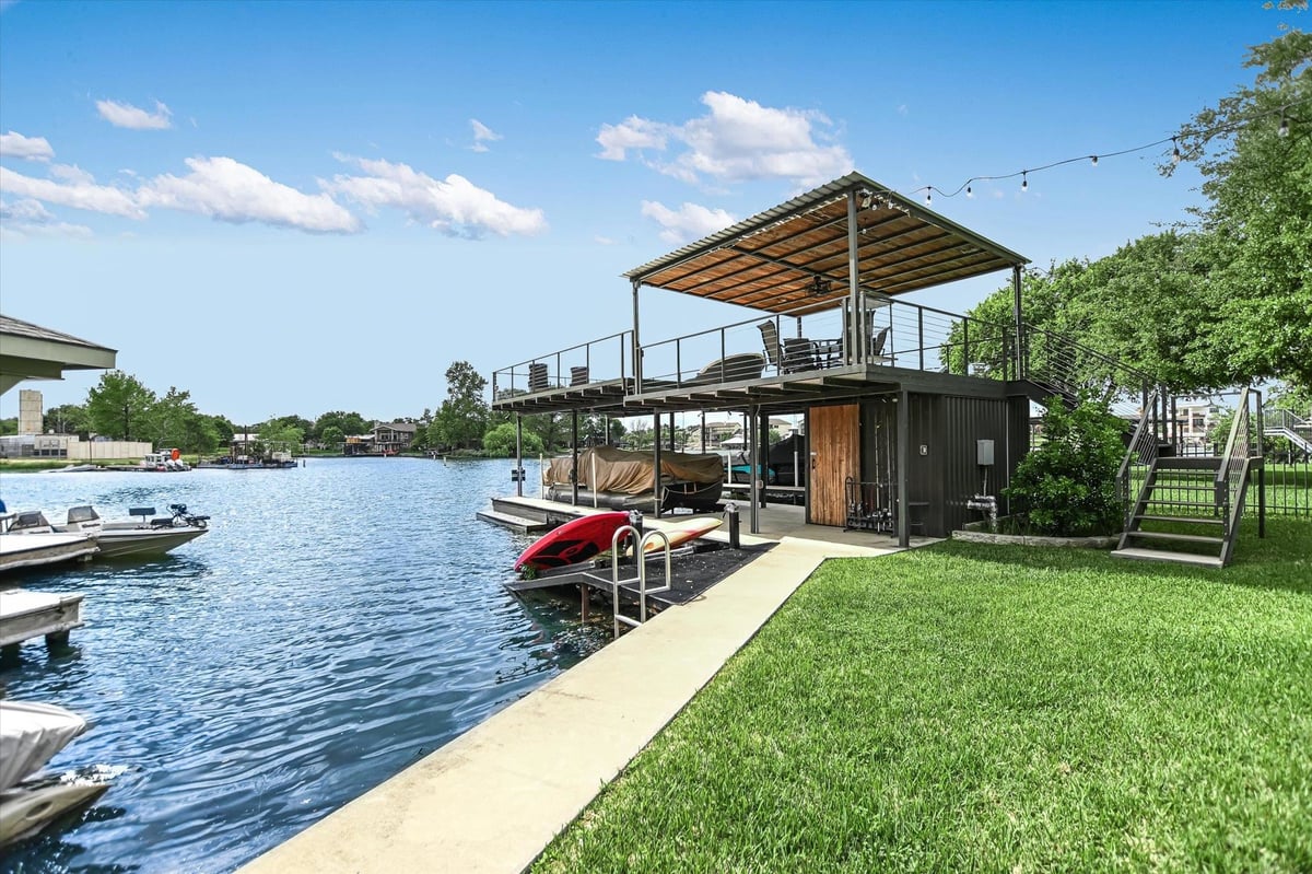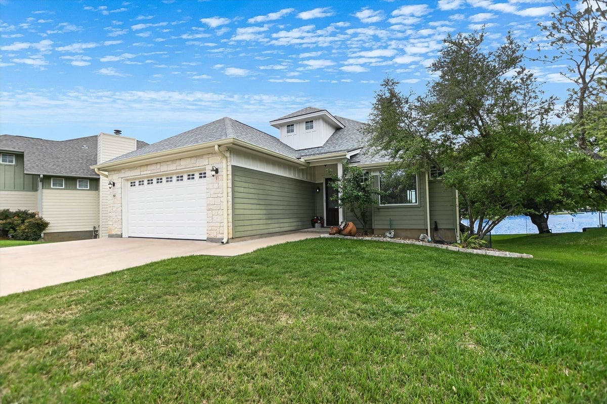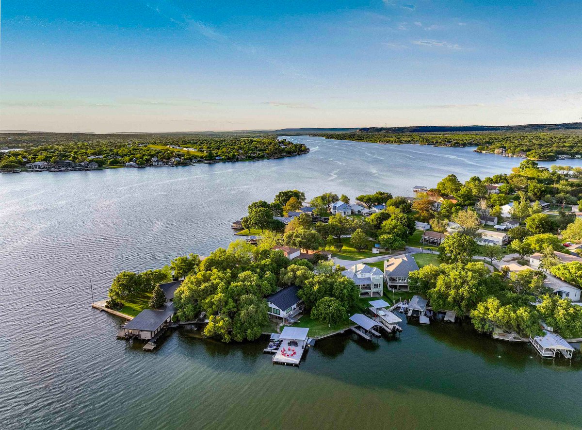 Set along a quiet no-wake cove with 79' of constant-level Lake LBJ waterfront, 503 Shorewood Circle offers a relaxed approach to waterfront living designed for gathering, unwinding, and making the most of time at the lake. Southeast-facing views bring in soft morning light, while calm water creates the perfect setting for swimming, paddleboarding, and easy days that stretch into the evening. At 2,103 sq. ft., the home features a comfortable, functional layout with a main-level primary suite and two upstairs guest suites--both boasting incredible lake views. The living area is anchored by a wood-burning fireplace and framed by expansive windows, while the open kitchen includes granite countertops, custom cabinetry and stainless steel appliances including double convection ovens. The adjacent dining area offers space for large family gatherings or dine al fresco on the main level covered patio. Outdoor living takes center stage with an expansive covered patio, and a flat, level lawn leading to the shoreline. A firepit invites evenings by the water, while the metal and concrete boathouse includes a boat lift, two PWC docks, storage room, and upper-level deck with both covered and full sun spaces. Additional highlights include an insulated garage and generous storage throughout. As Granite Shoals allows short-term rentals, 503 Shorewood Circle offers flexibility as a full-time home, weekend retreat, or investment property. Call today to schedule a showing.
