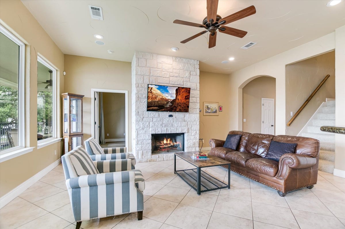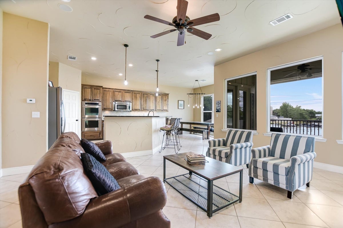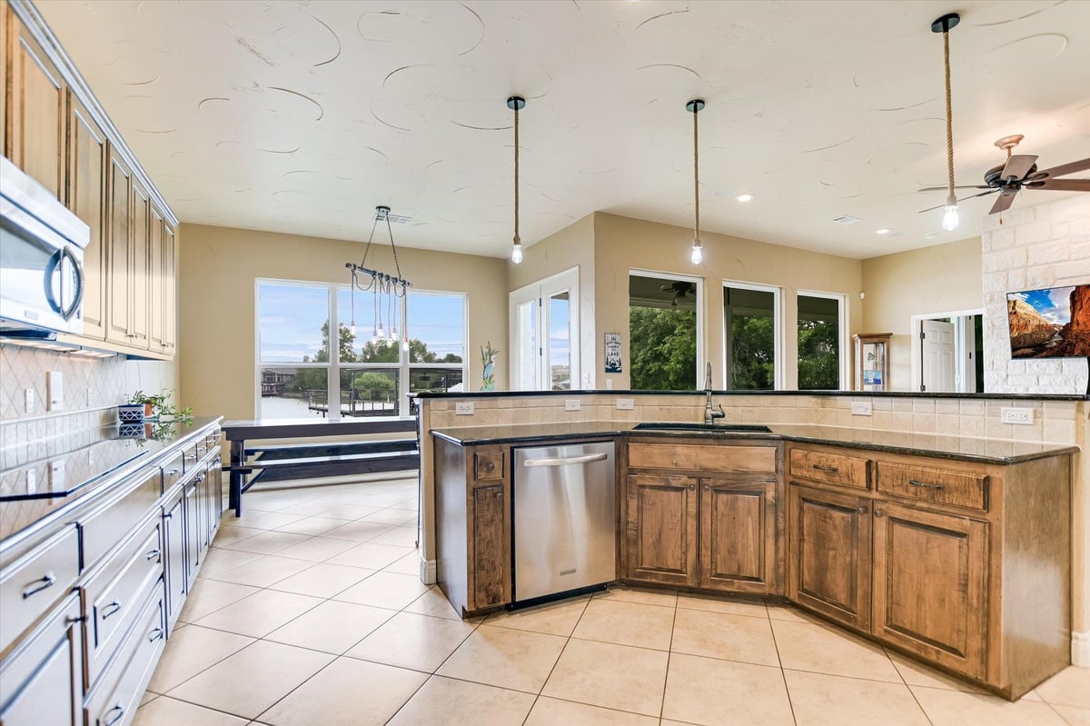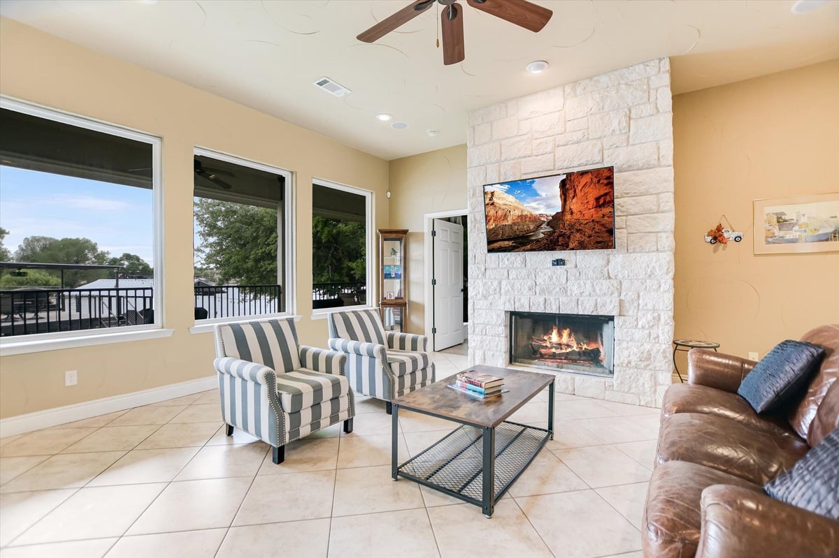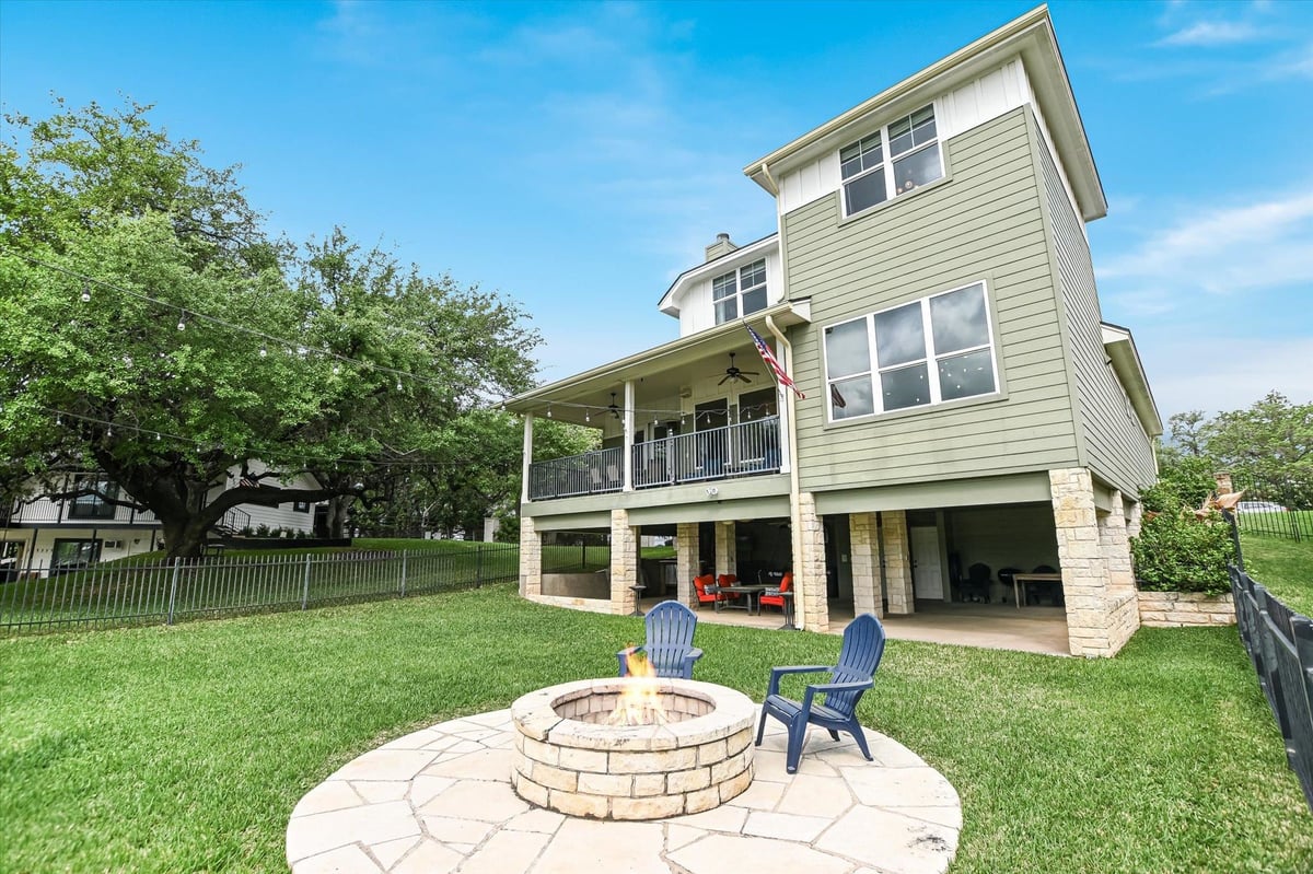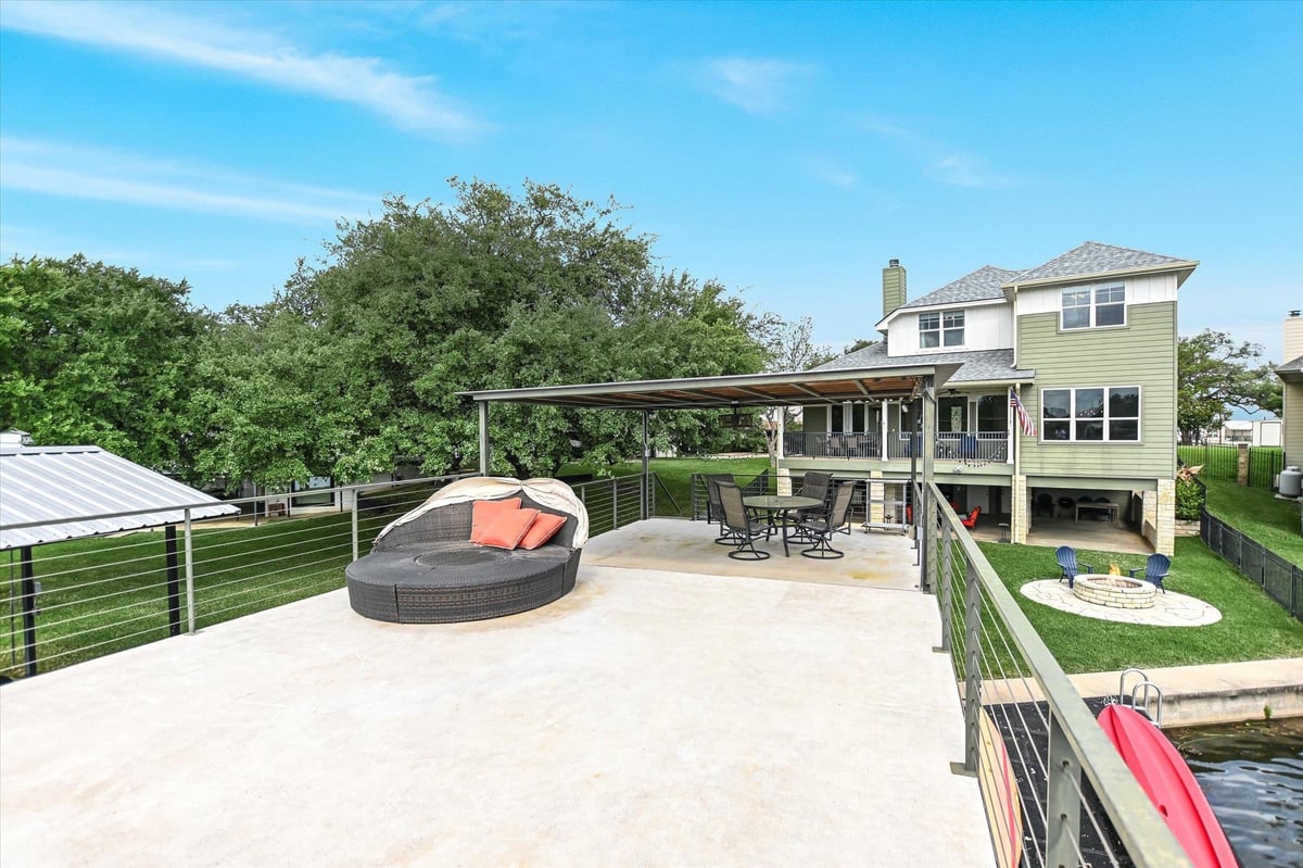 Set along a quiet no-wake cove with 79' of constant-level Lake LBJ waterfront, 503 Shorewood Circle offers a relaxed approach to waterfront living designed for gathering, unwinding, and making the most of time at the lake. Southeast-facing views bring in soft morning light, while calm water creates the perfect setting for swimming, paddleboarding, and easy days that stretch into the evening. At 2,103 sq. ft., the home features a comfortable, functional layout with a main-level primary suite and two upstairs guest suites--both boasting incredible lake views. The living area is anchored by a wood-burning fireplace and framed by expansive windows, while the open kitchen includes granite countertops, custom cabinetry and stainless steel appliances including double convection ovens. The adjacent dining area offers space for large family gatherings or dine al fresco on the main level covered patio. Outdoor living takes center stage with an expansive covered patio, and a flat, level lawn leading to the shoreline. A firepit invites evenings by the water, while the metal and concrete boathouse includes a boat lift, two PWC docks, storage room, and upper-level deck with both covered and full sun spaces. Additional highlights include an insulated garage and generous storage throughout. As Granite Shoals allows short-term rentals, 503 Shorewood Circle offers flexibility as a full-time home, weekend retreat, or investment property. Call today to schedule a showing.