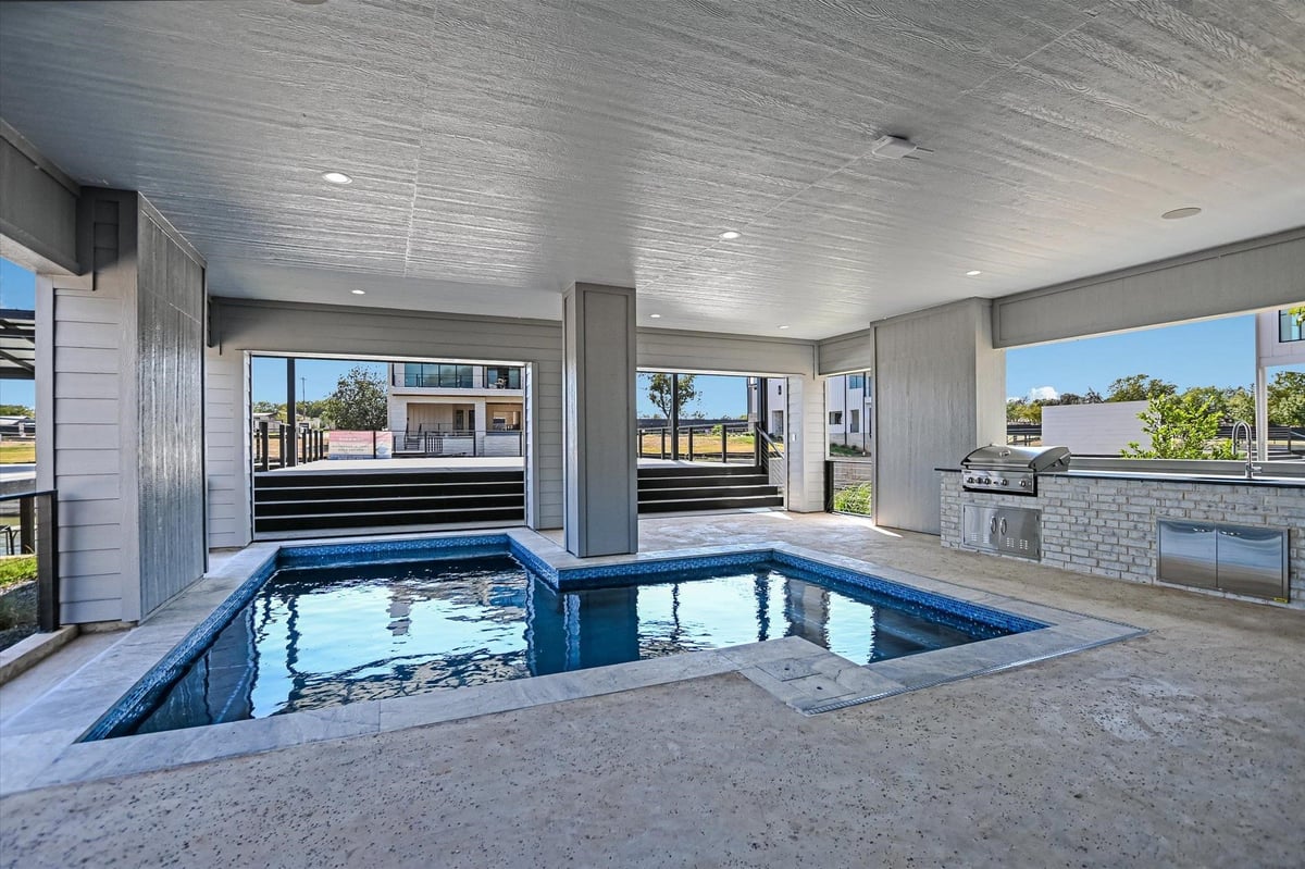 Welcome to 516 Lake St, an exceptional custom-built home currently in the construction phase within The Drace, Kingsland's new luxury gated waterfront community. With an expected completion date of October 1, 2025, this stunning home by KM Custom Homes blends elegant design with the serene lifestyle that lakeside living offers. Spanning 4,028 sq. ft., this home features 5 bedrooms and 5.5 bathrooms, with an elevator providing easy access to all levels. The main floor showcases an open floor plan that enhances the flow of space throughout the living and dining areas, highlighted by floor-to-ceiling windows and sliding doors that connect the indoor and outdoor environments. This level also includes two guest suites and a wet bar area for entertaining. Upstairs, you'll find the luxurious primary suite, which boasts a private balcony, alongside a guest suite and a cozy bunk room, both featuring convenient en-suite baths. This level also features a lounge area and a private balcony, offering ample space to unwind after a long day on the lake. The private boat dock guarantees access to the lake, while the outdoor features--including a private pool, an outdoor kitchen, and inviting living spaces--create the perfect environment for memorable gatherings. The Drace community elevates the experience with outstanding amenities, including a marina, boat launch, and extra parking for vehicles and boat trailers, making it an ideal choice for those interested in operating as a short-term rental. What are you waiting for?