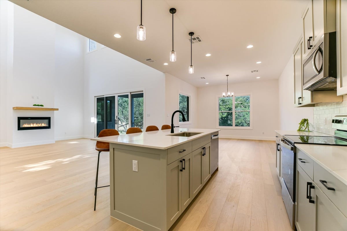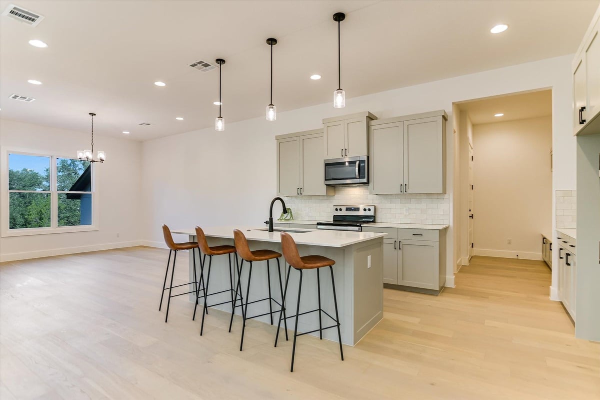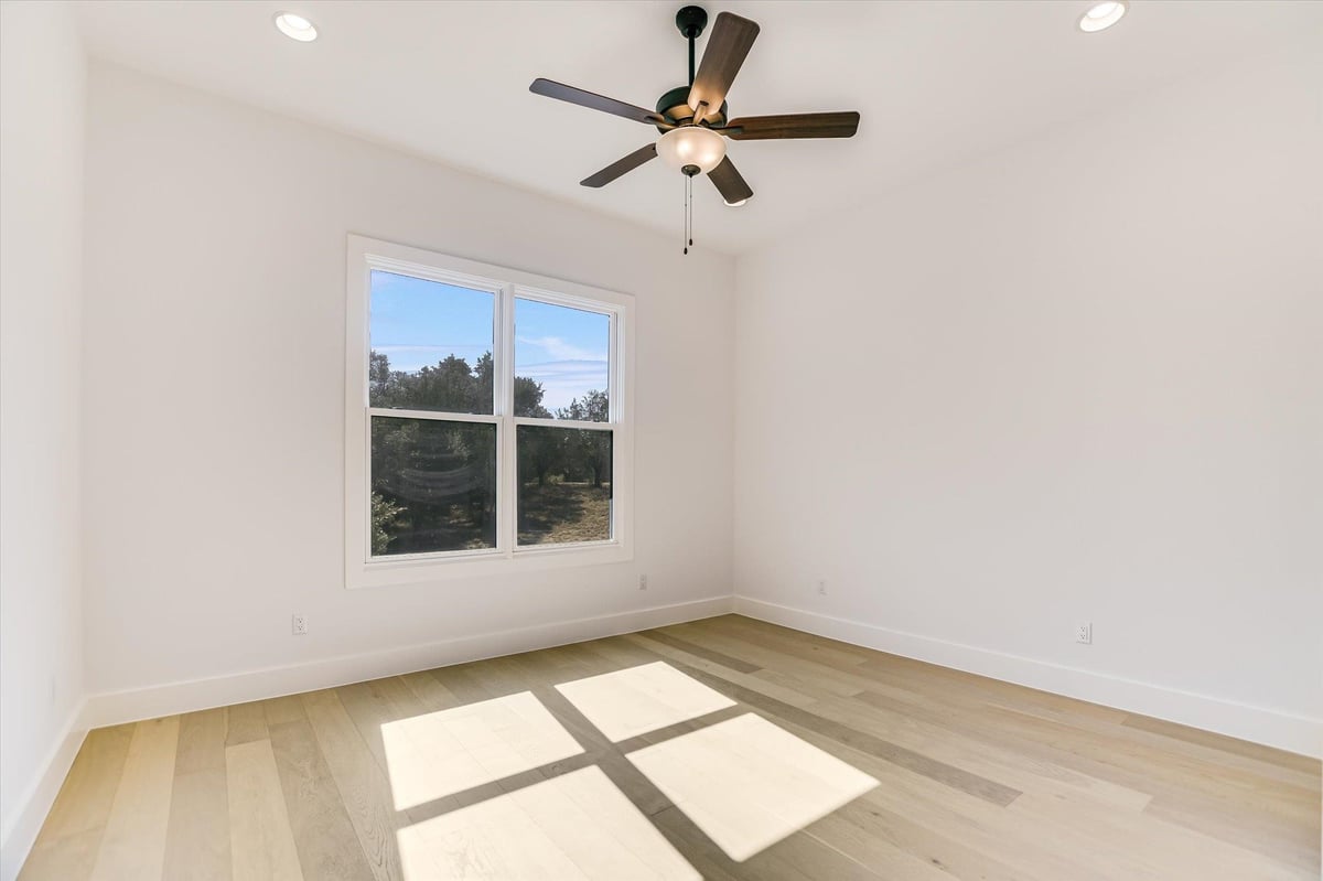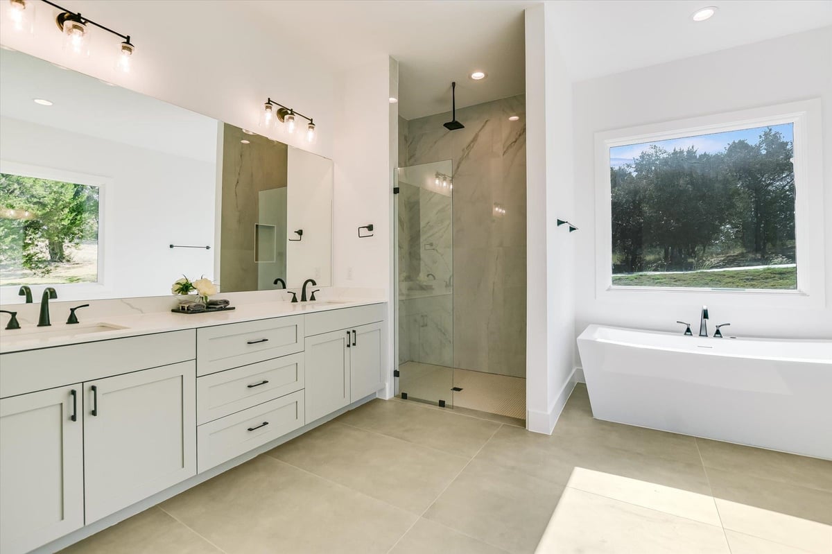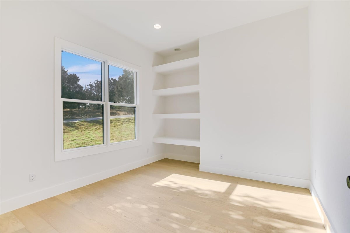 Welcome to 604 Apache Tears, a serene Hill Country retreat in the highly sought-after Horseshoe Bay West community. Perfectly blending modern luxury with relaxed Texas charm, this newly constructed home rests on an oversized 0.41-acre lot close to both the lake and the golf course. Designed for comfort and versatility, the open-concept layout welcomes you with soaring ceilings, abundant natural light, and elegant finishes--ideal for family living, entertaining friends, or enjoying quiet evenings at home. The island kitchen takes center stage, boasting quartz countertops, stainless steel appliances, and a walk-in pantry, flowing seamlessly into the spacious living and dining areas. Oversized sliding doors lead to a covered patio overlooking the private, peaceful backyard-perfect for casual gatherings, grilling, or simply relaxing after a long day. The main-level primary suite offers a spa-inspired bath featuring a soaking tub, walk-in shower, and custom closet. A private study, powder bath, and mudroom are conveniently located on the main level. Upstairs, you'll find a flex room-perfect for movie nights, hobbies or a home gym-along with a junior suite and two additional guest rooms that share a Jack-and-Jill bath. With a 3-car garage, hardwood floors, and designer finishes, this home is luxurious yet perfectly livable for every stage of life. Just minutes from award-winning golf courses, constant-level Lake LBJ, and resort amenities, 604 Apache Tears offers the best of Horseshoe Bay living.